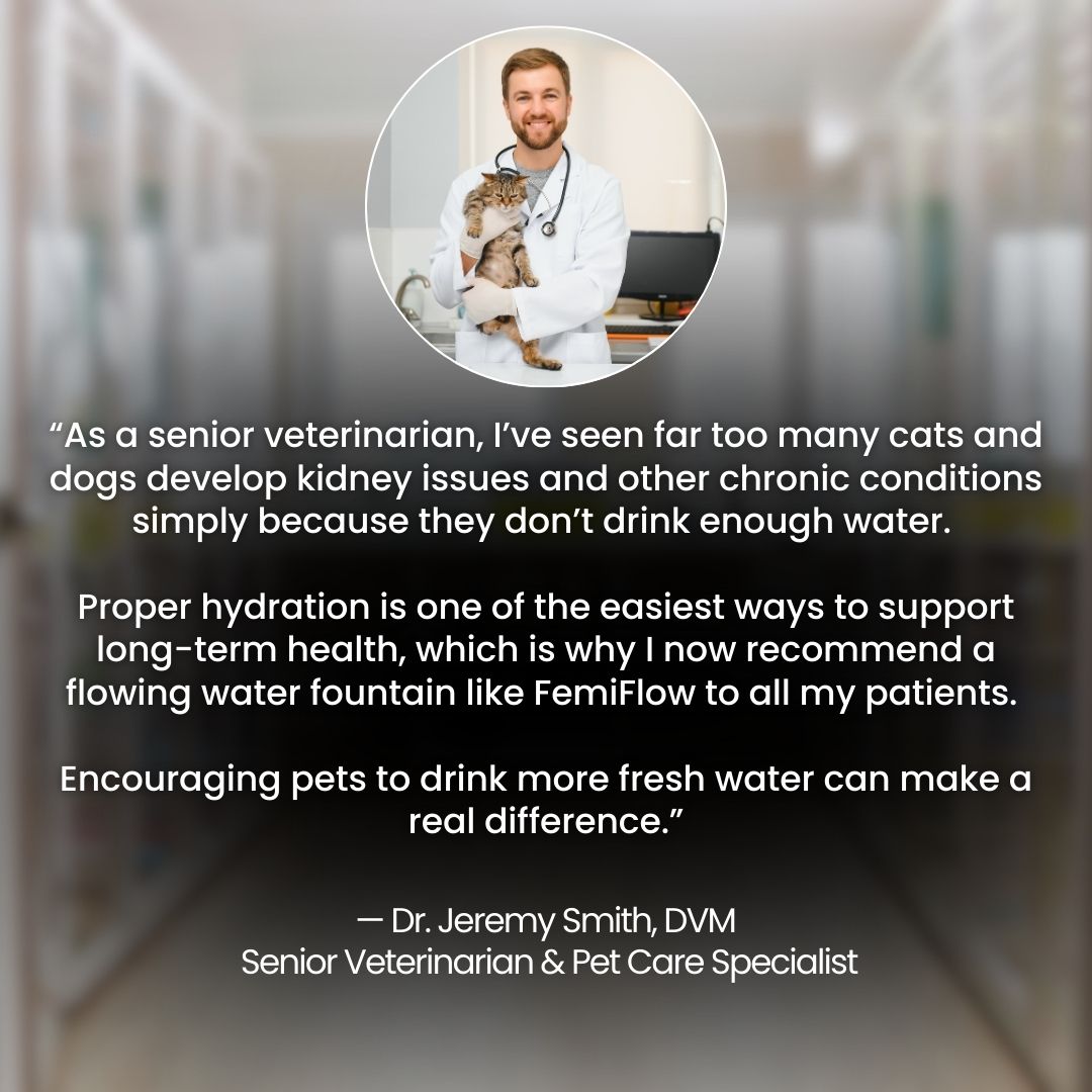 That’s why veterinarians often encourage flowing water. FemiFlow provides fresh, circulating water throughout the day, naturally enticing cats to drink more. It’s a simple upgrade that supports healthier hydration — especially for cats on a dry food diet.