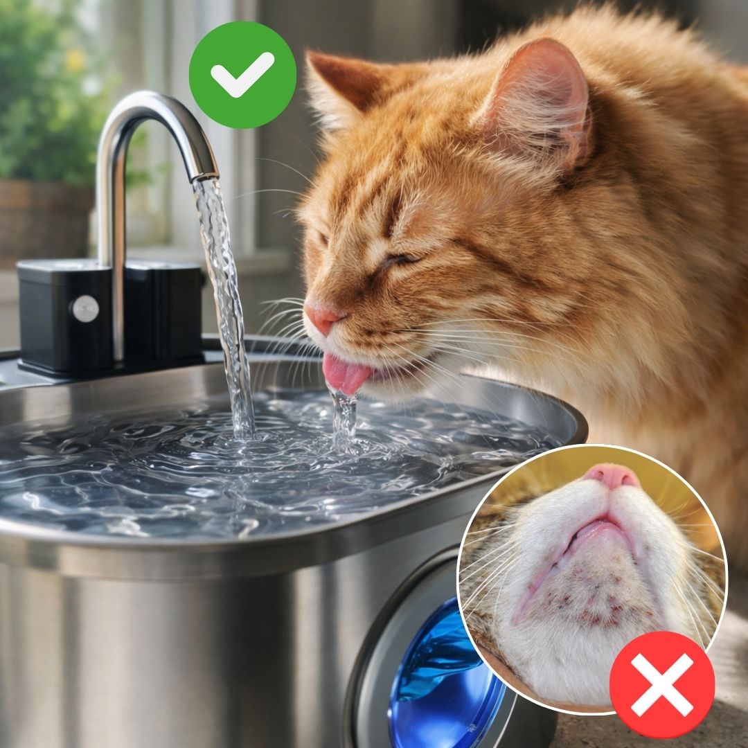 Unlike plastic, stainless steel doesn’t trap bacteria or odors, supporting cleaner water and improved everyday cleanliness. No more feline acne!
